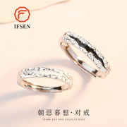 IFSEN情侣戒指一对小众设计开口纯银对戒男女款定制三八节送礼物