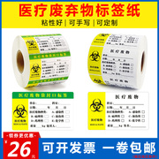 医疗废物袋封口标签通用版不干胶医院废弃物垃圾标识贴医用垃圾袋警示标志封口贴黄色手写标贴1000张订制包邮