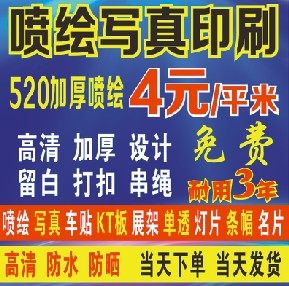 1 室内户外喷绘写真kt板pp车贴广告布灯箱名片舞台条幅幕布婚庆展架 1.00 详情