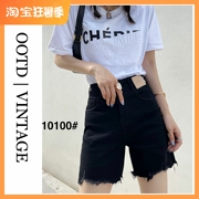 OOTD | VINTAGE夏季毛边短裤女韩版黑白蓝色宽松侧开叉a型裤10069