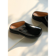 LILVINTAGE | 手工制 意大利牛皮底 时髦亮面包头拖鞋 2022夏
