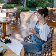 实拍现货2020夏女 7881牛仔背带裤P95- 限148上衣P55限98 套限238