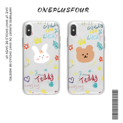 卡通涂鸦小熊兔手机壳适用华为p30pro苹果vivo少女三星oppo魅族软