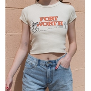 Brandy Melville同款西部牛仔字母印花短款T恤bm针织露脐短袖上衣
