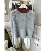 【Peace With Vogue】定制拼色圆领丝羊绒时髦感气质毛衣