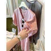 【Peace With Vogue】定制苎麻法式领口柔软透气淡雅粉短袖衬衣