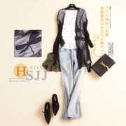 海尚集锦 春装新品2016女装 设计感 拼欧根纱立领中长款马甲10201