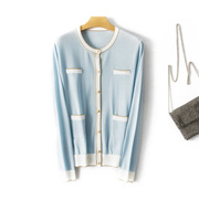 HSJJ 新款 小香风亮丝线门襟长袖美利奴羊毛针织开衫SM5077特