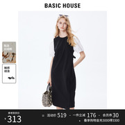 Basic House/百家好连衣裙女2023夏季新款垂感收腰修身t恤裙子