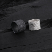 INS网红银饰黑白食指尾戒暗黑先锋DETAJ风格仿绷带款S925纯银戒指