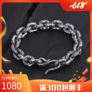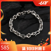 希然手工锤击手链925银做旧霸气硬朗11mm粗健身男重金属机车骑士