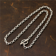 希然手工锤击项链925银复古个性百搭硬汉6mm粗男重金属机车坦克链