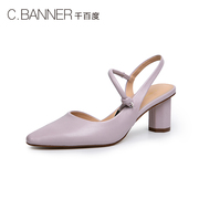千百度女鞋2020春新品时尚优雅仙女鞋圆柱高跟半凉鞋A20229721