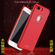 中国红iphone7镜面硅胶手机壳苹果6s/7plus套水钻奢华软壳女挂绳6