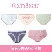 【5条99】6IXTY8IGHT正品68内裤舒适可爱印花三角低腰少女内裤女