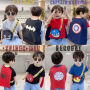 超酷披风英雄短袖T恤上衣男儿童宝宝衣服帅气可拆斗篷披风短袖T恤