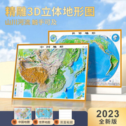 【超大3d地图】2023新版立体地图 中国地图和世界地图 3d地形图 立体凹凸地图挂图墙贴 106*76cm 地势教学三维学生家用办公室