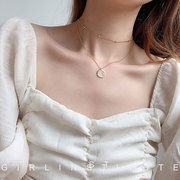 Retro round coin double necklaces women's clavicle chain Ko
