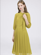 SCOFIELD女装2023年夏季蝴蝶结优雅显瘦百褶雪纺洋装SFOWC3707S