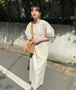 CL@NE松本力推!! 抗皱微挺阔透气聚酯纤维 立体泡泡袖 过膝连衣裙