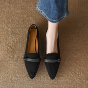 【意大利】René Vanvilla敲显腿细⭐平底2cm 真皮尖头磨砂乐福嚡