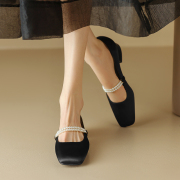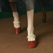 【意大利】René Vanvilla优雅减龄⭐粗跟3cm 真皮珍珠链玛丽珍嚡