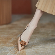 René Vanvilla美得不拘一格⭐细跟6.5cm 真皮尖头复古花朵高跟嚡