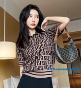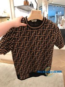 Fendi/芬迪春夏新款经典老花满印提花双F字母圆领短袖T恤针织衫女