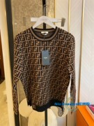 FENDI/芬迪23SS经典老花字母满logo长袖针织衫修身圆领上衣毛衣女