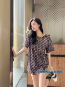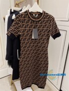 Fendi/芬迪SS经典满印老花字母logo针织裙子女提花短袖修身洋装