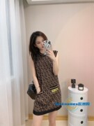 Fendi/芬迪 23新款老花双F满印字母无袖包臀裙针织衫吊带裙女