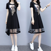 胖mm大码女装遮肚显瘦洋气夏装2020新款胖妹妹减龄网纱心机连衣裙