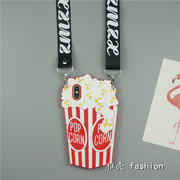 爆米花苹果x手机壳斜挎iphone7plus挂脖i8硅胶全包边6s背带链条套