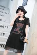 16 鑫水淼淼大码女装夏新款雪纺拼接棉烫钻显瘦加肥短袖T恤胖妹m200 69.90 详情