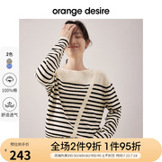 orange desire条纹针织衫女2023春季新款设计感圆领上衣慵懒风