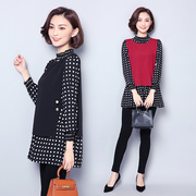 17 2017大码女装秋季新款假两件时尚网纱长袖打底修身显瘦圆领连衣裙 49.80 详情
