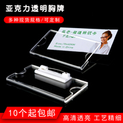 亚克力胸牌透明胸卡别针工作牌更换插纸姓工号牌胸夹员工工牌别针有机玻璃胸牌夹磁铁学生证卡定做