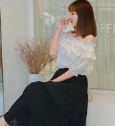 2020夏款Beauty6111韩版高腰三粒扣鱼尾裙荷叶边裙女裙时尚显瘦