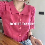 法国rouje damas短袖polo领针织衫夏季2021新款外搭开衫女薄款T恤