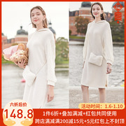三彩2019冬季纯色连帽金丝网纱雪尼尔针织裙长袖连衣裙D944021L00