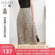 三彩2021夏季新款高腰中长款开叉半身裙女气质复古豹纹半裙垂感