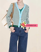 1231C2065302之专柜正品2023年夏款3-3超细棉撞色条纹V领开衫1996