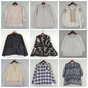 复古着vintage外贸日韩棉麻刺绣休闲宽松森系春夏上衣衬衫M.A-117