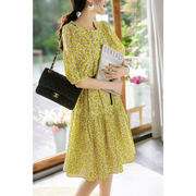 Alice Vivian无敌の少女感活力黄肌理皱感泡泡袖减龄小碎花桔梗裙