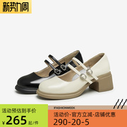 Tata/他她2023秋季新款粗跟玛丽珍鞋圆头小皮鞋女单鞋WGB01CQ3