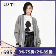 uti尤缇2021秋季新款学院风休闲V领长袖开衫女针织衫UG309427A583