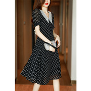 OLYFOU 飒美知性! 2021圆玲木耳边别致真丝八分秀显瘦碎花连依群