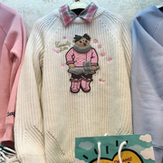 赵露思2021秋冬新款女装甜美娃娃领减龄套头小熊卫衣 TTMA213804P