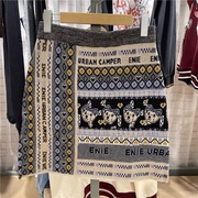 2021秋冬新款小熊提花半身裙 高腰针织裙 包臀裙短裙 TTWK214901T
