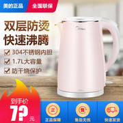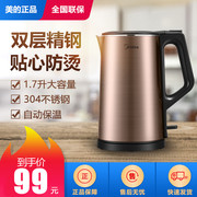 Midea/美的 WHJ1705b电热水壶双层隔热304不锈钢烧水壶1.7L大容量